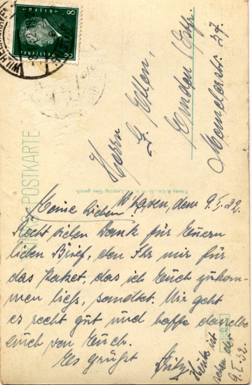 Wie sein Bruder Elfried war Friedrich ein eifriger Karten- und Briefeschreiber.